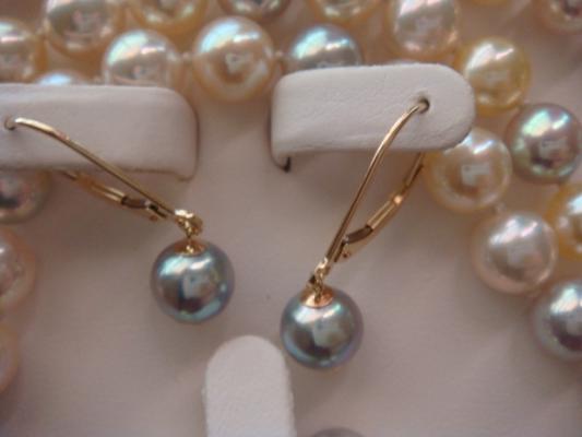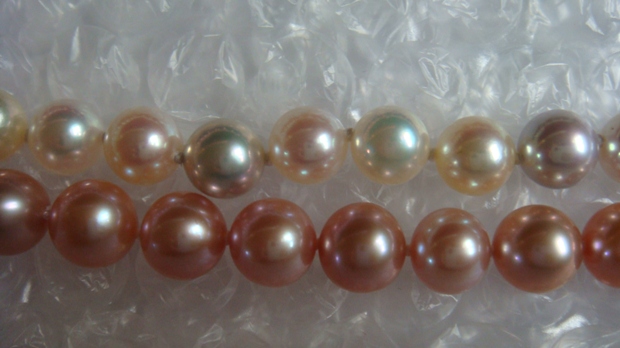 This is a close up of the vietnamese akoyas (7.5-8mm) vs Lavender Freshwater 8-9mm.