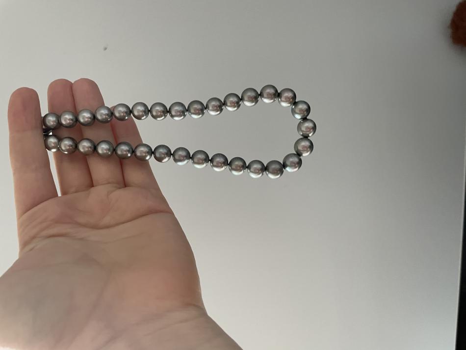 Long-time lurker of Pearl Guide here. First off, thank you for all the wonderful info! I finally decided to invest in a Tahitian pearl necklace. I bought online and was pretty disappointed, luckily the site has a good return policy. The necklace looked much darker and greener in body color in the picture online and was described as having a dark body color with subtle peacock overtones. What I received looked like bright silver balls in both artificial and natural light.