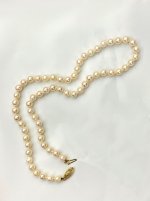 Pg 1 Small strand -- Purchased for Mom by Mom from JCP (Mom: They were on sale, plus my discount!!) ~1990's. They are creamy, with a nice luster, and a generic clasp. Nice pearls, for what she paid! She wore these a lot when she worked in corporate marketing for Chick-fil-A (yum).