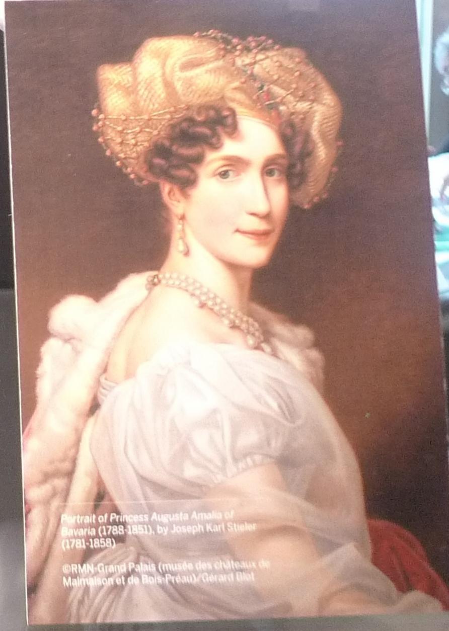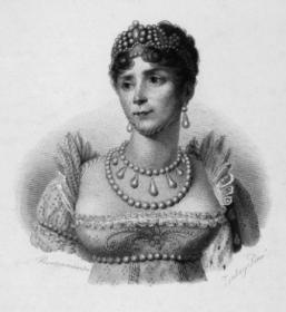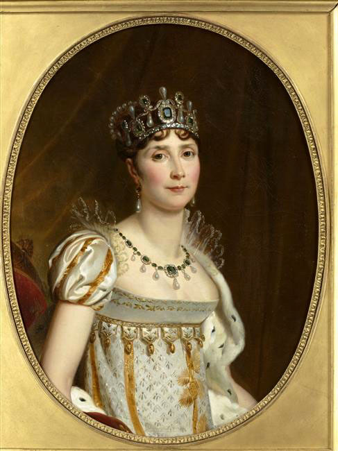 Queen Josephine - 5 pearls between each drop (which seems consistent in other paintings of the necklace). Since this is a painting, I just looked at the number of pearls, not their individual shapes.
