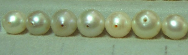 The pearls, as strung, could not have been more out of style at the time (1968) and I was already 2 years into my career as a bead stringer. I have adorned several special necklaces with them for family members, as there are more family members than the short necklace. I have held these pearls dear and passed them out sparely and still have about 8-10" left. The gift necklaces go out with strong statements about the rarity and authenticity of these natural pearls!