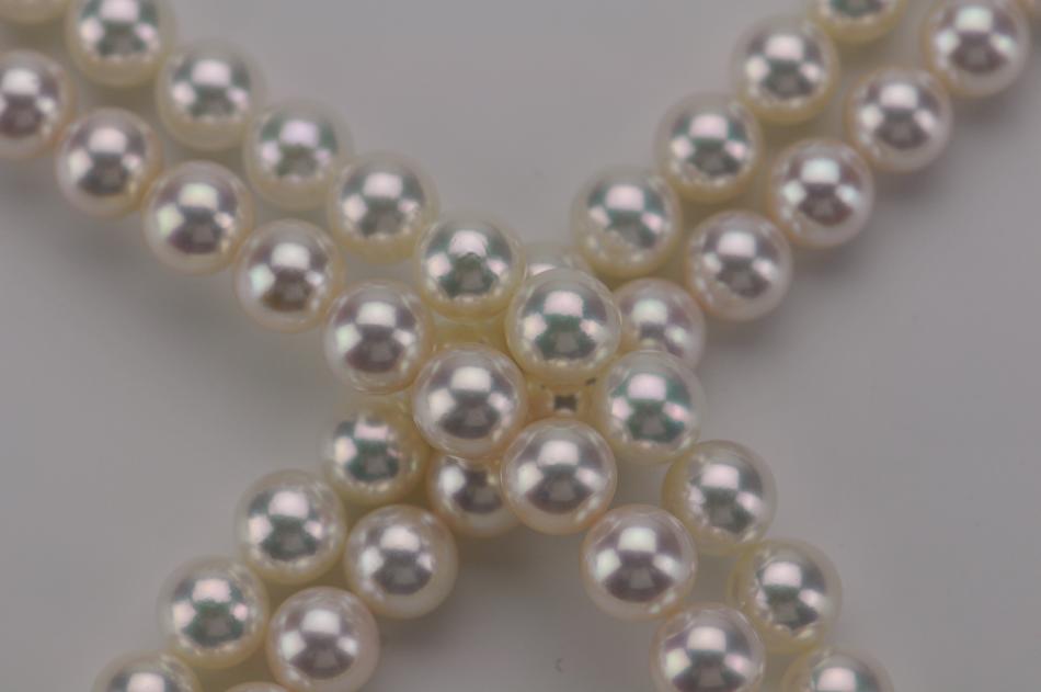This photograph is an excellent example of the difference between the two. Something to think about if you are planning to invest in a good strand of akoya pearls.