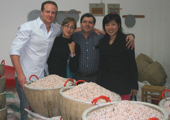 We were only able to find one company in Zhuji that had already separated a large lot of bigger-size baroques. But they did not separate for quality, so we would have had to select the pearls one by one - not a big deal, except... the company was Tears of Angel. For those of you familiar with the big players out there, Tears of Angel is definitely in the upper echelons. The problem is, their prices are out in fantasy land. For example, they wanted 250RMB per pearl for selection of the large, free form white. We had already selected about 100 pieces just to ensure that it would be worthwhile to continue before we sat down to negotiate. Although the pearls were beautiful with intense orient, 250 is crazy - that is about $30 per pearl, or about $900 for a finished strand of 12-14mm baroques. For the colored pearls (like those in the photo) they wanted about 3x market price for selection.