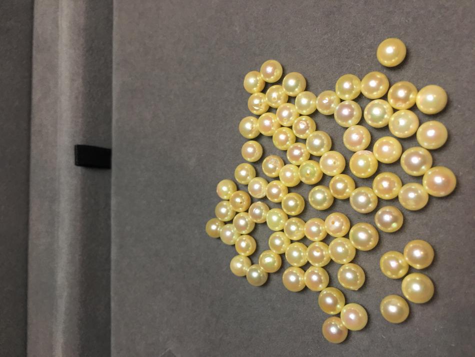 Have waited for more than 8 months for the back order to collect these four strands which are almost same shade of golden, and same size. Cut one strand today and took a shot of the loose pearls.
