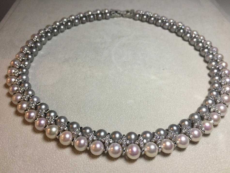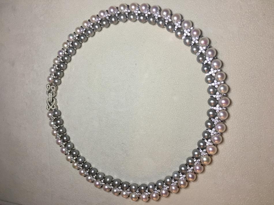 Double strands akoya necklace. White and grey akoya rounds.