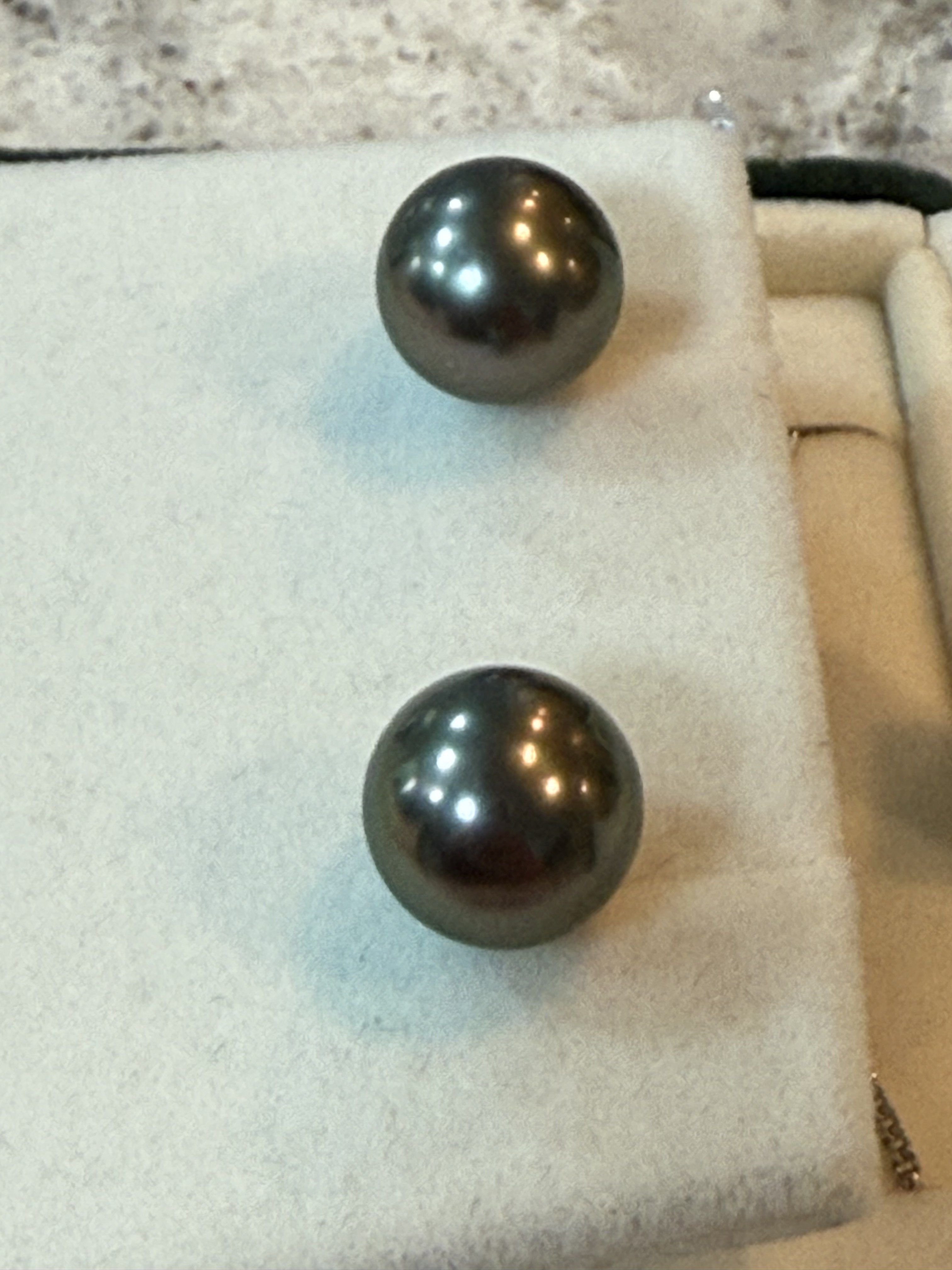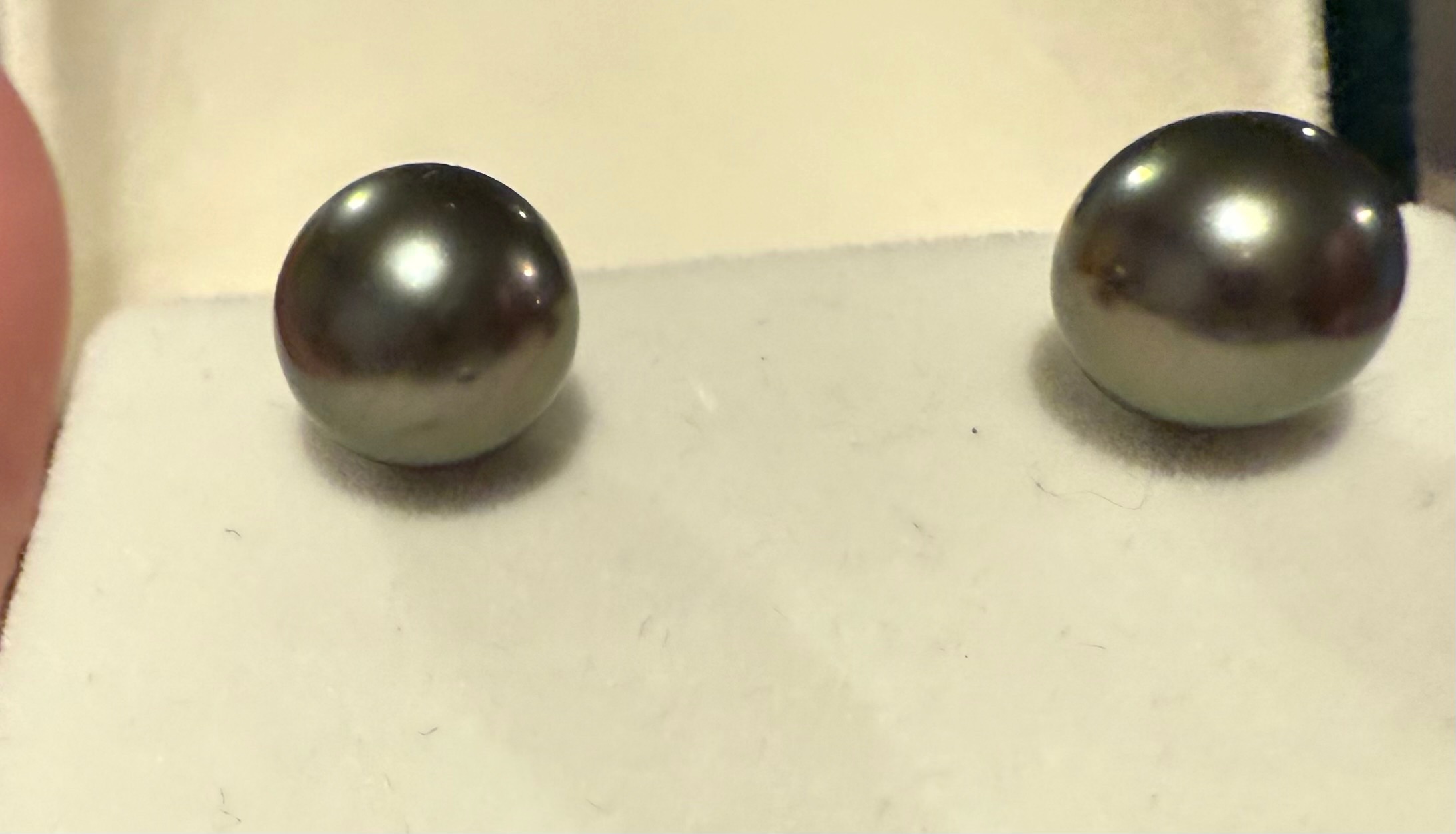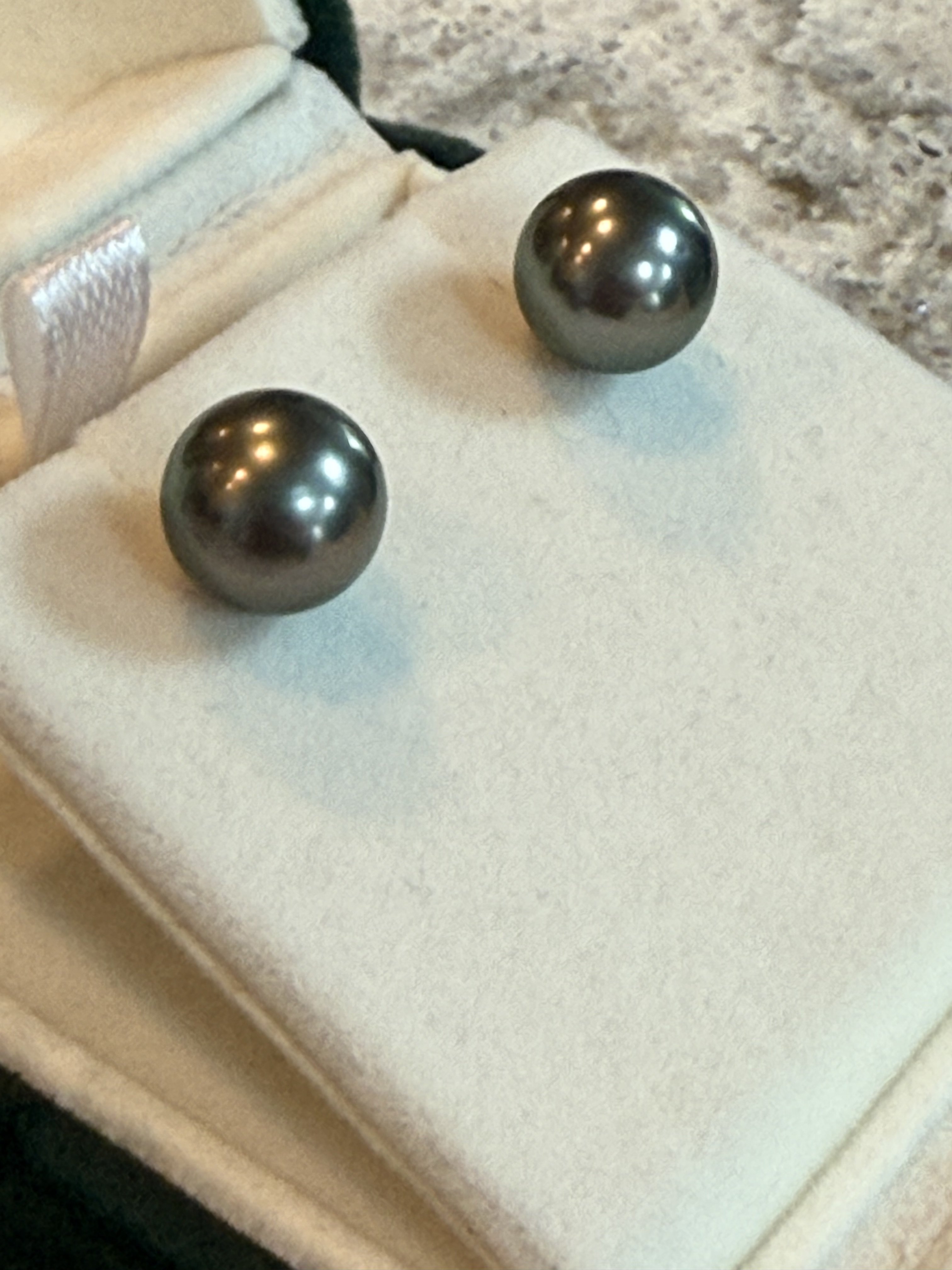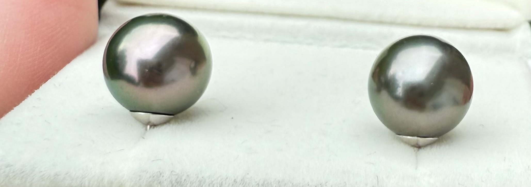 Hello! I am new to this site (got recommended by Reddit) and recently received some Tahitian pearl earrings as a gift. I’m trying to figure out what colors my pearls have. I know that they definitely look shinier and lighter in color than they photograph because in person they almost look like they’re made of silver.