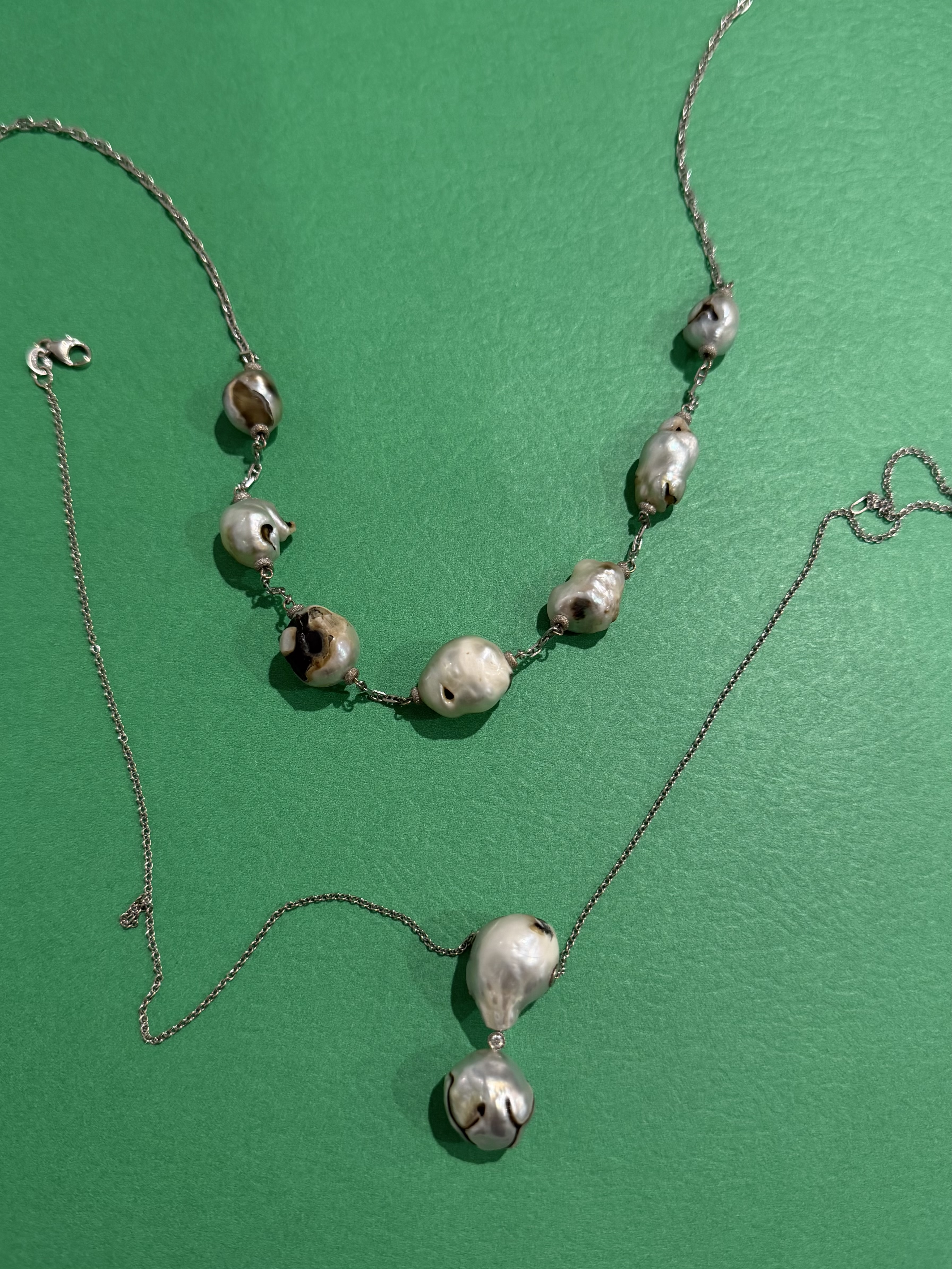 So, new member here (thanks Pattye for the referral to the site!) and I'm looking for some help with these odd pearls. A fine jeweler in Lahaina loved them enough to combine them with gold and diamonds and I loved them enough to purchase them in 2010. They are interesting and eye catching. Many comment on them, mostly asking about their origin. As I recall, the jeweler said that he had come across them and just liked them. Can anyone weigh in on them? Thanks for your help.