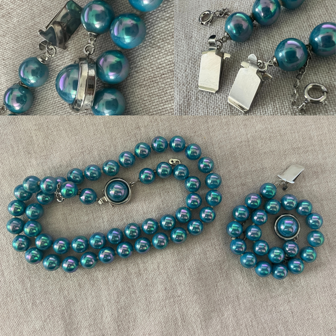 Hi- I found this necklace and bracelet set at an estate sale recently. Interesting woman, incredibly well-traveled, and loved all sorts of jewelry- real, costume and everything in between. Soooo... what have I here? Real and dyed? Glass? I cannot find ANYthing remotely like them online.