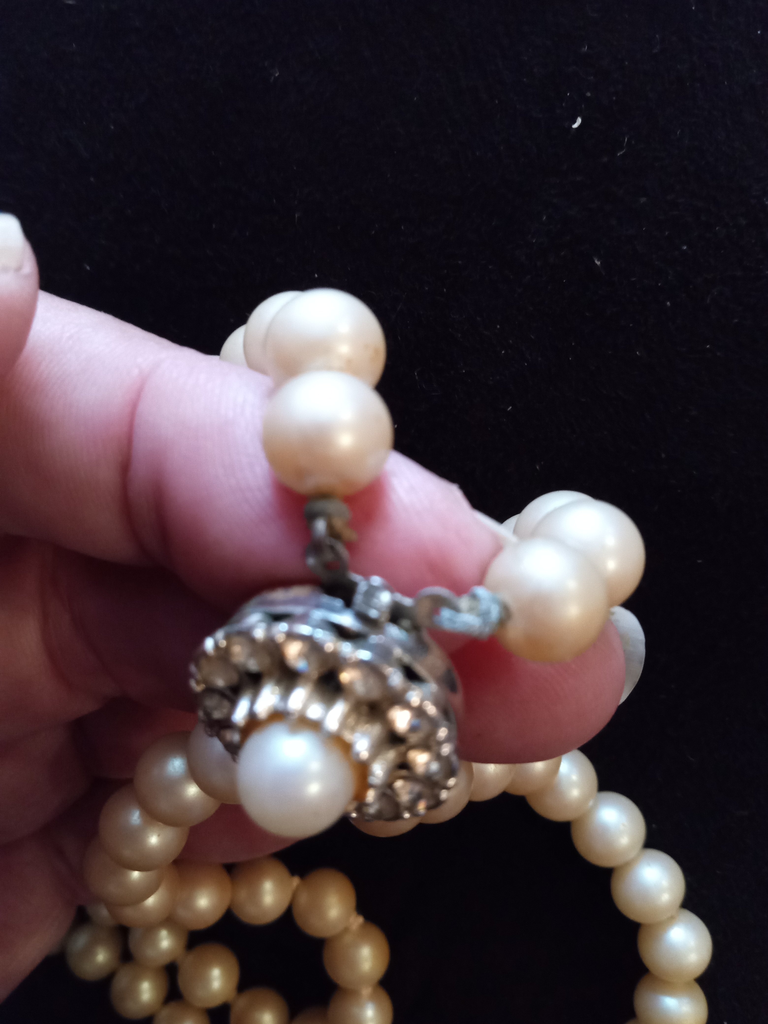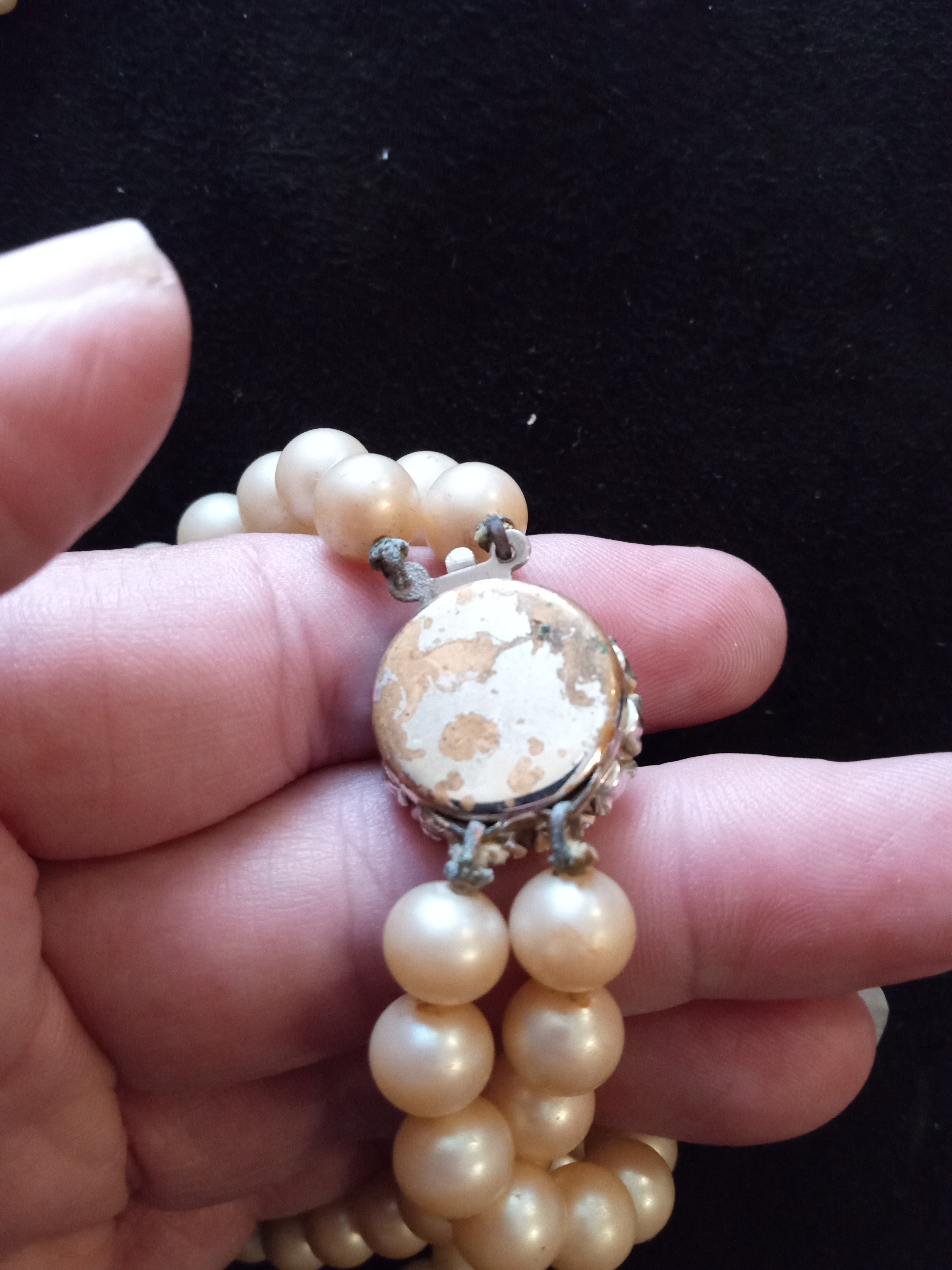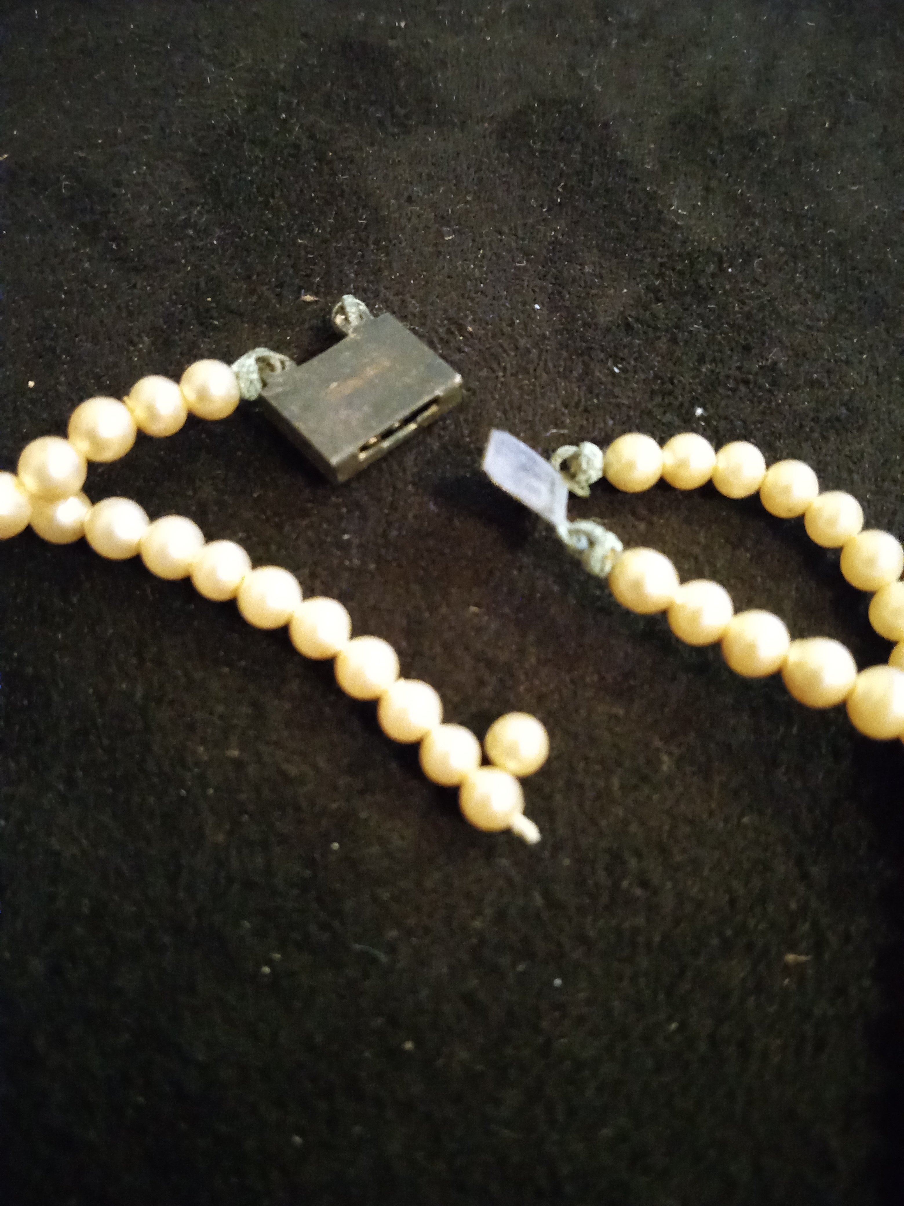 Hi , I got these for free they where with other old pieces of jewelry, I don't know anything about pearls , but one of the clasp seem to had broken on one strand the one clasp seems to say stealing b on the back of the box . Unfortunately it broke when I took it out , I have no clue if these are fake or real . Any guess. Thank you