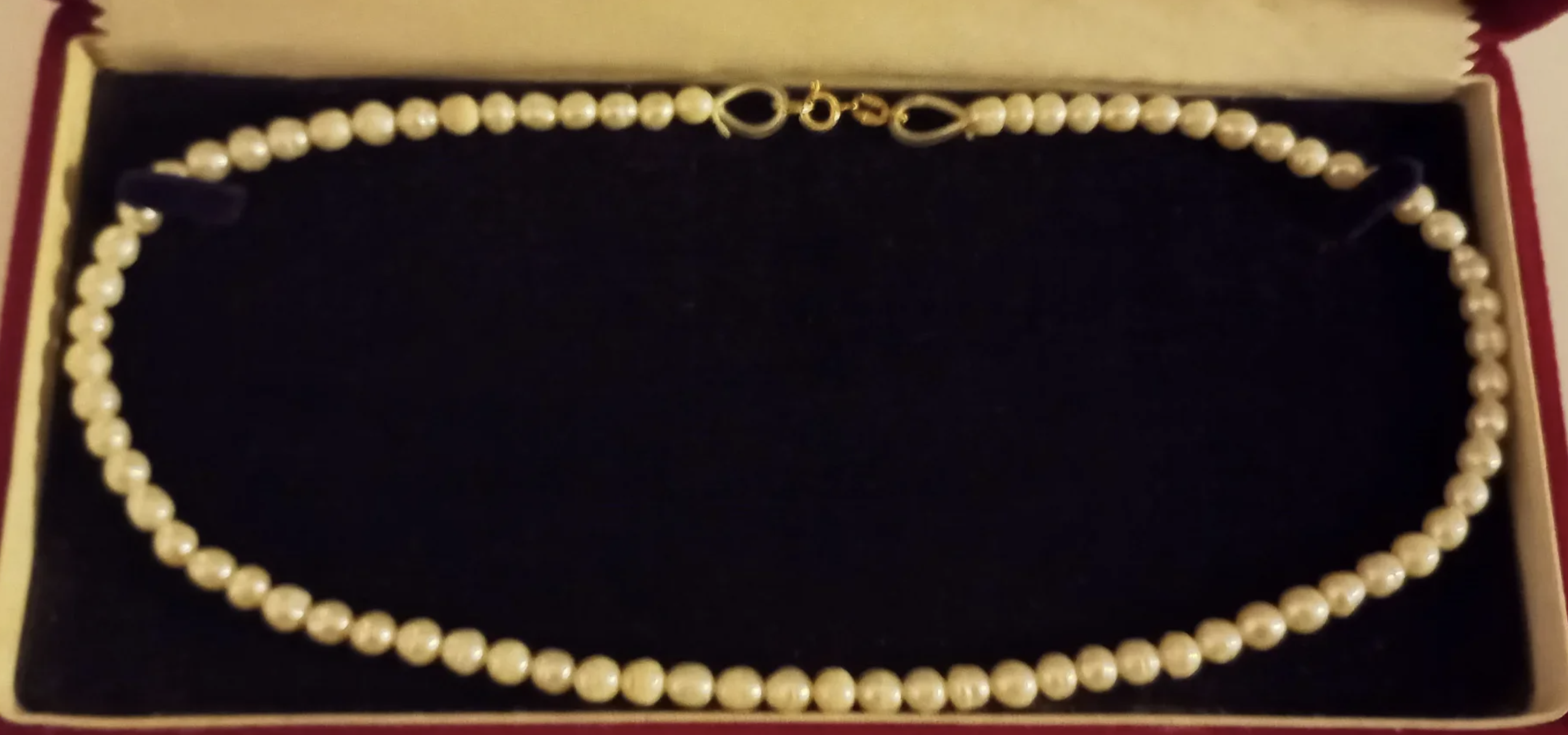 Oh well...the photos are very blurry and out of focus as well...so, it makes it all much difficult but those don't look like Akoya pearls but seem more like low quality freshwater pearls.