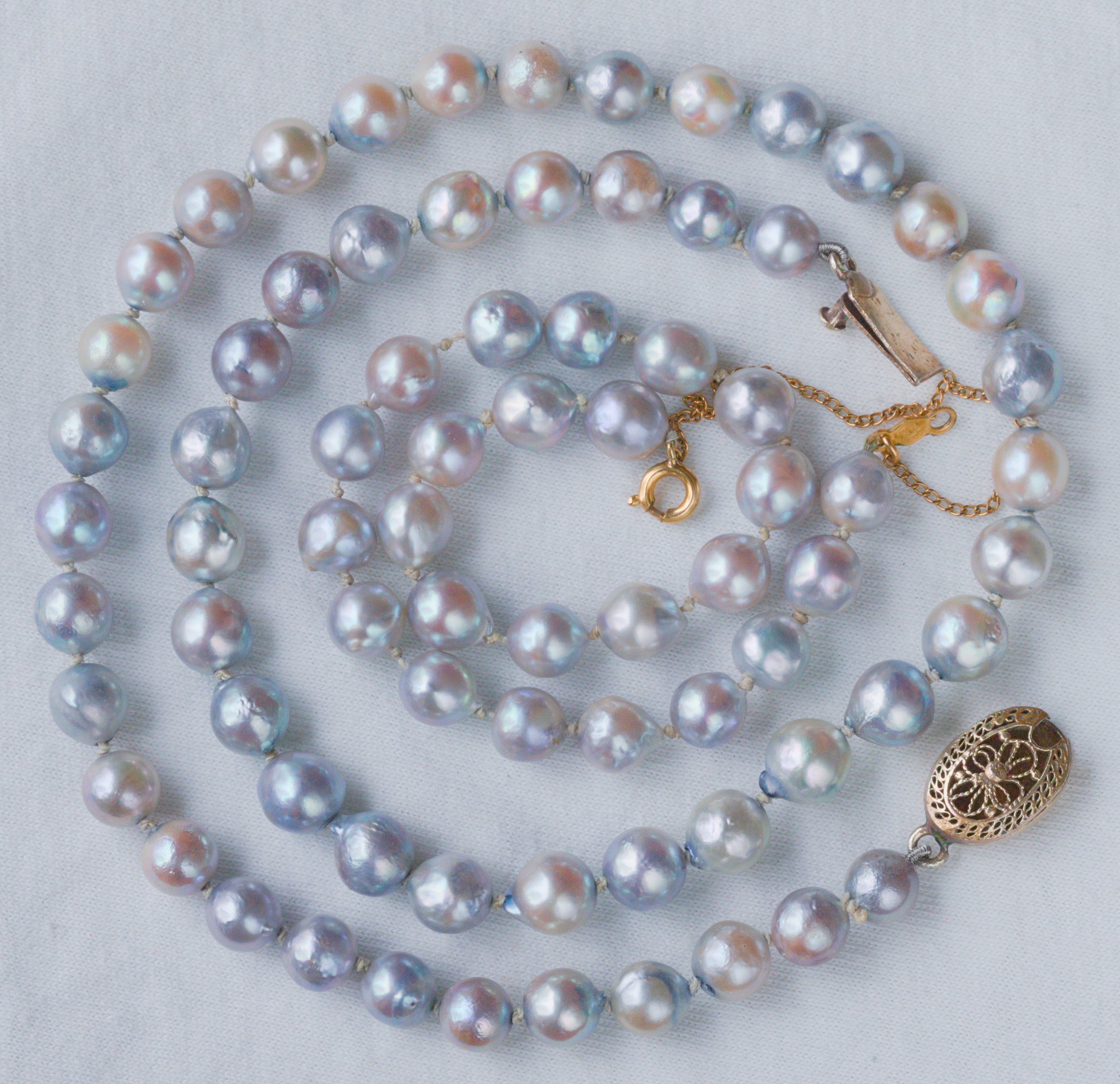 I acquired this necklace and bracelet as part of an auction lot. The seller described them as "cultured saltwater" pearls.