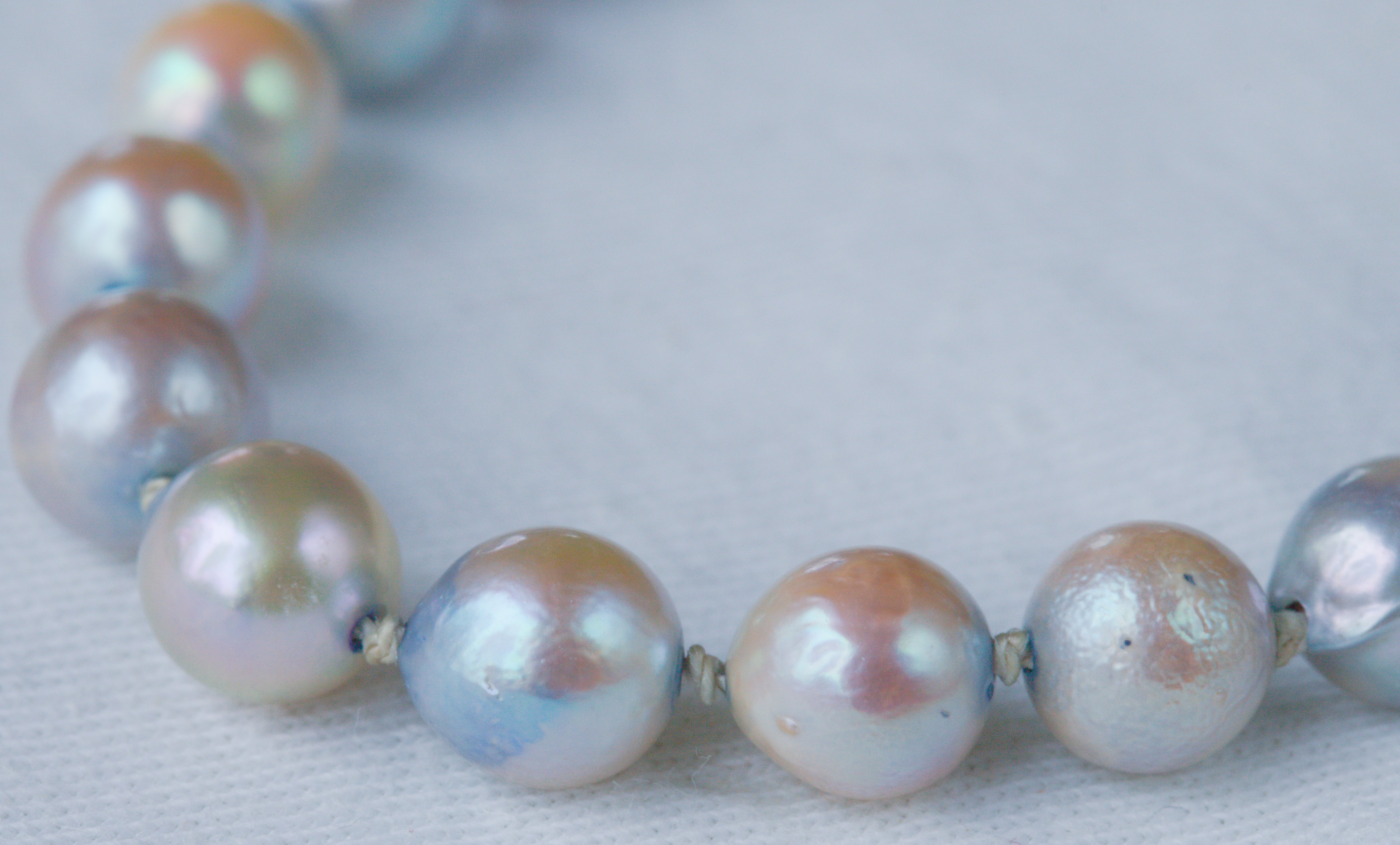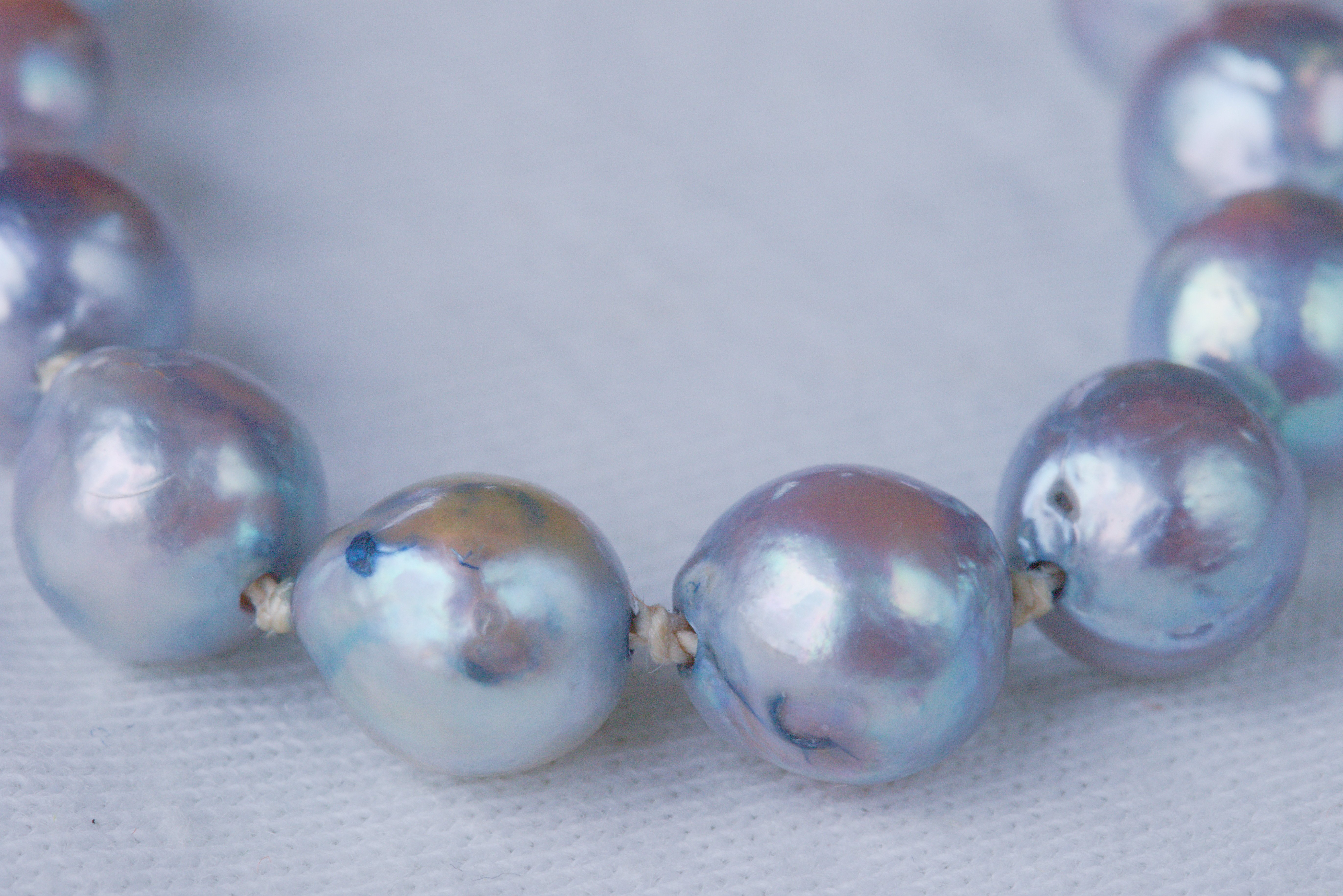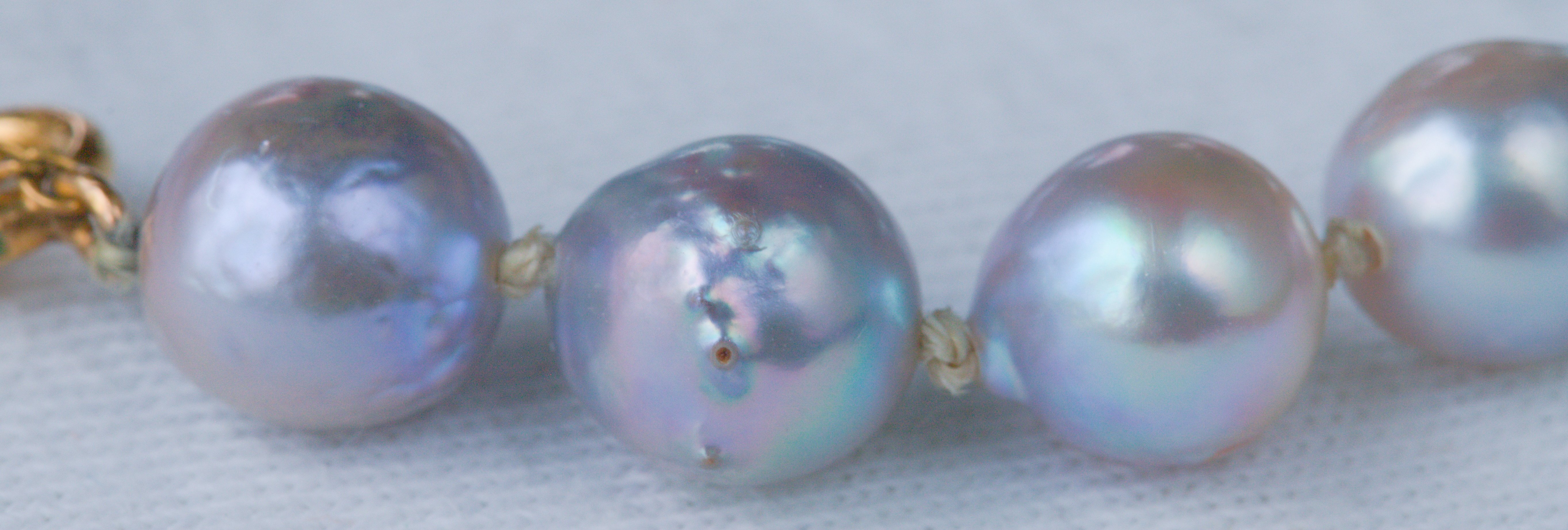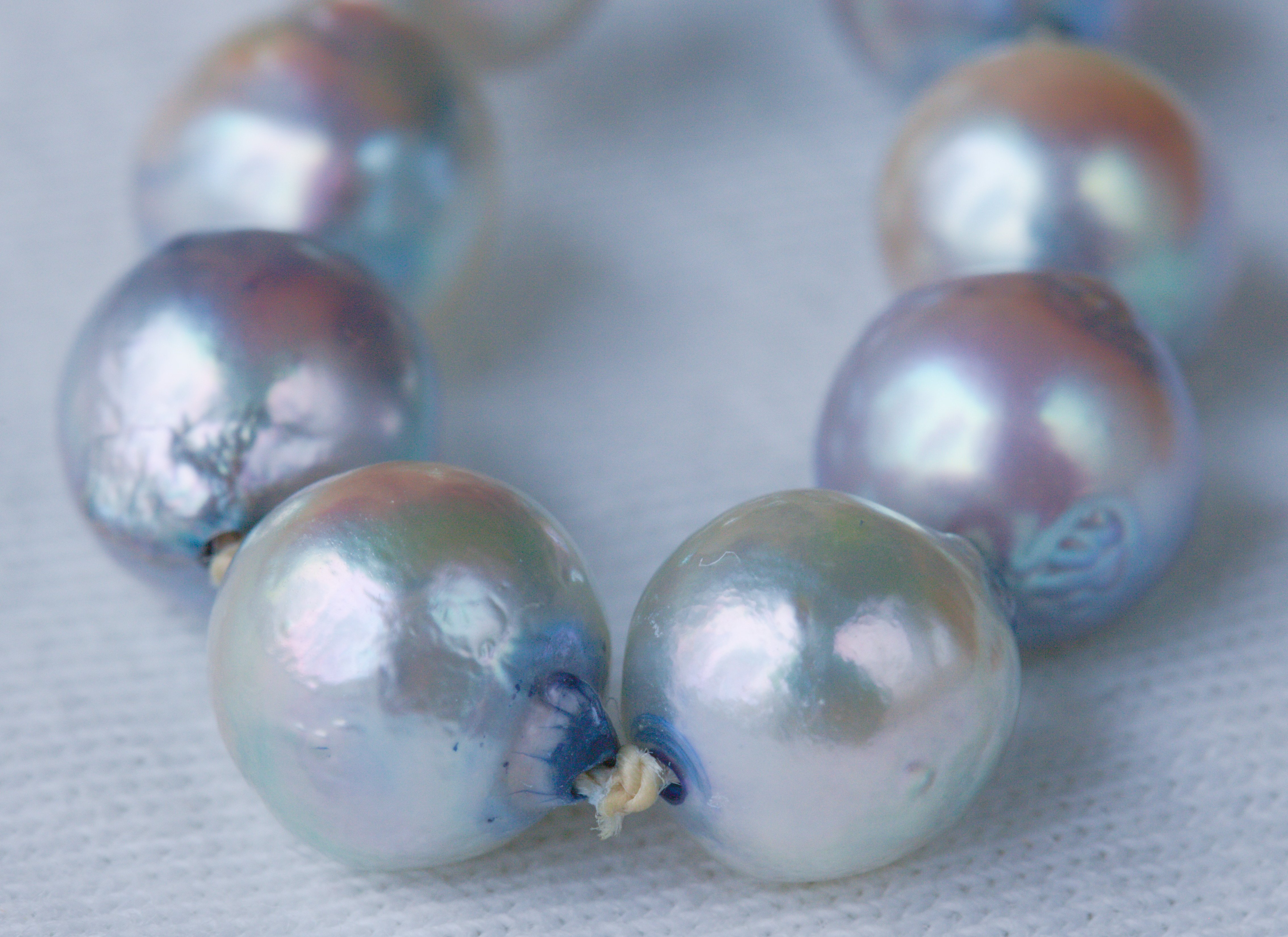 The coloring is odd. I'd read that dyed pearls would hold their color, but these (many of them) have some intense blue colors in the crevices while being only pale blue overall. So, poorly dyed baroque-ish Akoyas?