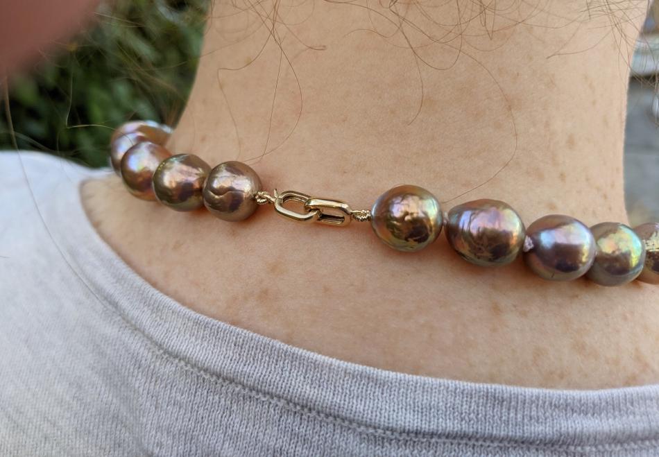 BUT this clasp really is up there as a favourite. I acquired this when I first started my business of stringing, I often look at the clasp in both design and the functionality of the tongue ( not like the usual one). I have kept the clasp in it’s original "as-worn" condition rather than reconditioning it, so that it keeps its story instead of becoming a shiny relic of the past.