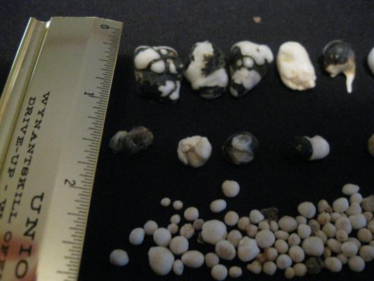 My goodness! That is quite a collection! I have never seen pearls like the ones on the top, only rocks, so I await a better answer as you do.