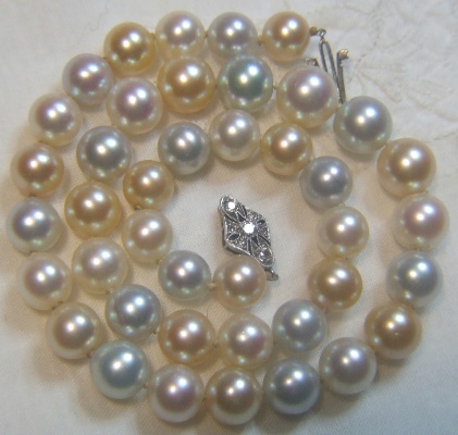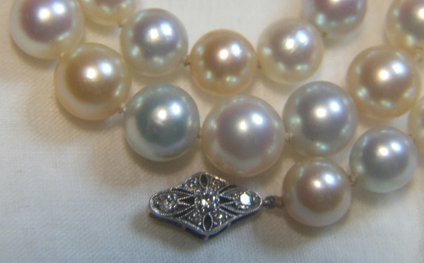 For a while I thought they must be smaller South Sea pearls but I do believe they are excellent vintate Akoyas.