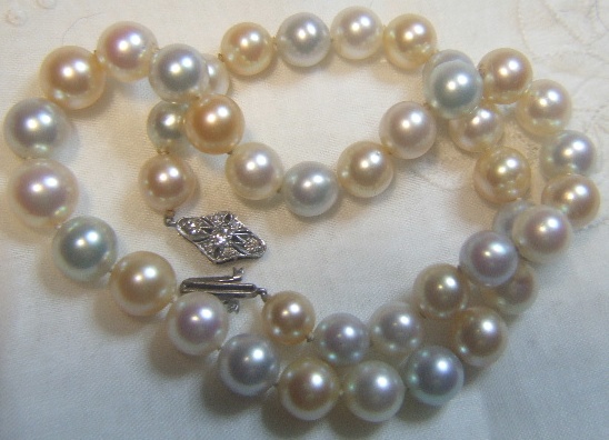 I have an Art deco Paste pearl neckace listed within the last 24 hours and I am positive they are Akoya Pastels. In my opinion they just don't come much better. As the strand was so short at around 15" I held on to them for several years waiting for those few extra perfect pearls to come along and finally I found them. Hence a necklace, finally, at a wearable lengthy. The pearls are Pinks, 'Blue, Gold, Whites and the clasp is Platinum with 7 really nice diamonds not that we as pearl lovers care about that. But as an enhancement they can be great.