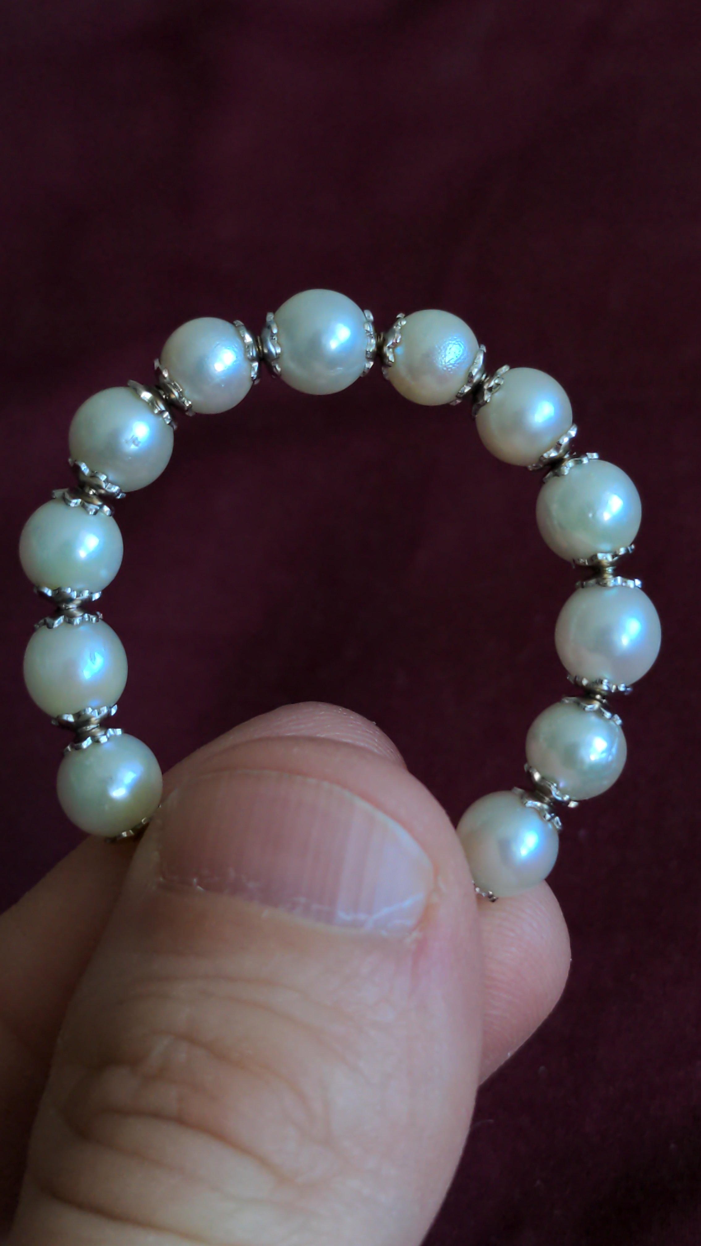 What I'm trying to figure out is if they're cultured or natural, and if cultured, what type (freshwater or saltwater)? On one hand, I thought it would be pretty easy to get perfect cultured pearls hence why the imperfect surfaces were odd, but since I think these are vintage, then maybe the technology to make perfect cultured pearls was not there at the time so some imperfections in pearls were acceptable? I found pictures online of vintage Mikimoto pearls (those are cultured Akoya, right?) and they are all flawless. I know natural pearls are rare, but the imperfections are strange so I'm wondering if they are natural pearls. They must be nice if they are set in 18k gold.