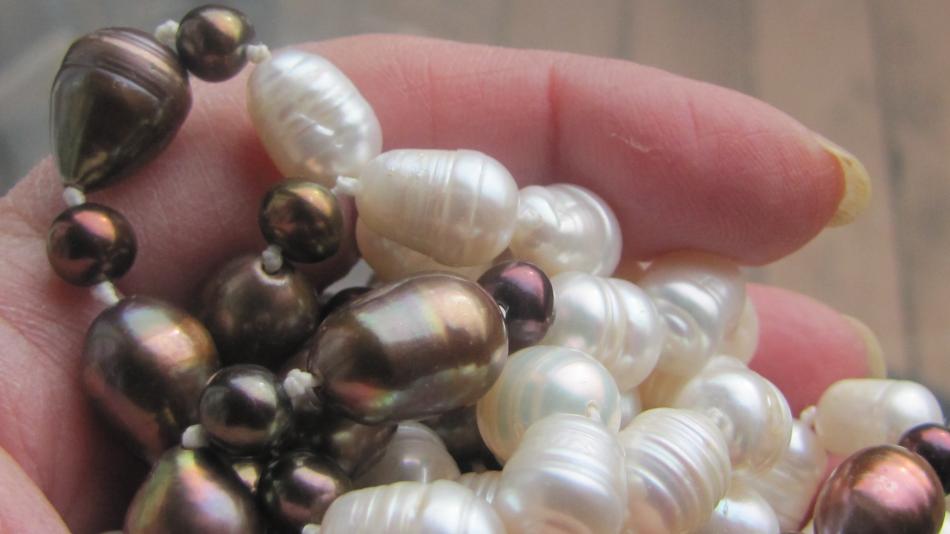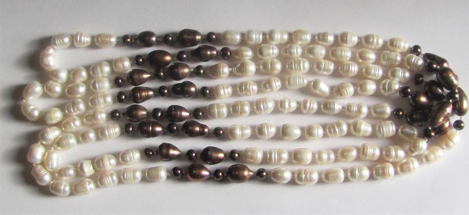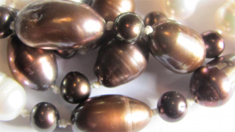 Hi group, I have a very long necklace (70") with some bronze colored pearls and thought they were simply dyed freshwater, but am wondering if they would possiby be tahitian and undyed. I am guessing that the white pearls are ringed freshwater pearls, but am not sure. Am hoping you can share your expertise. Many thanks.